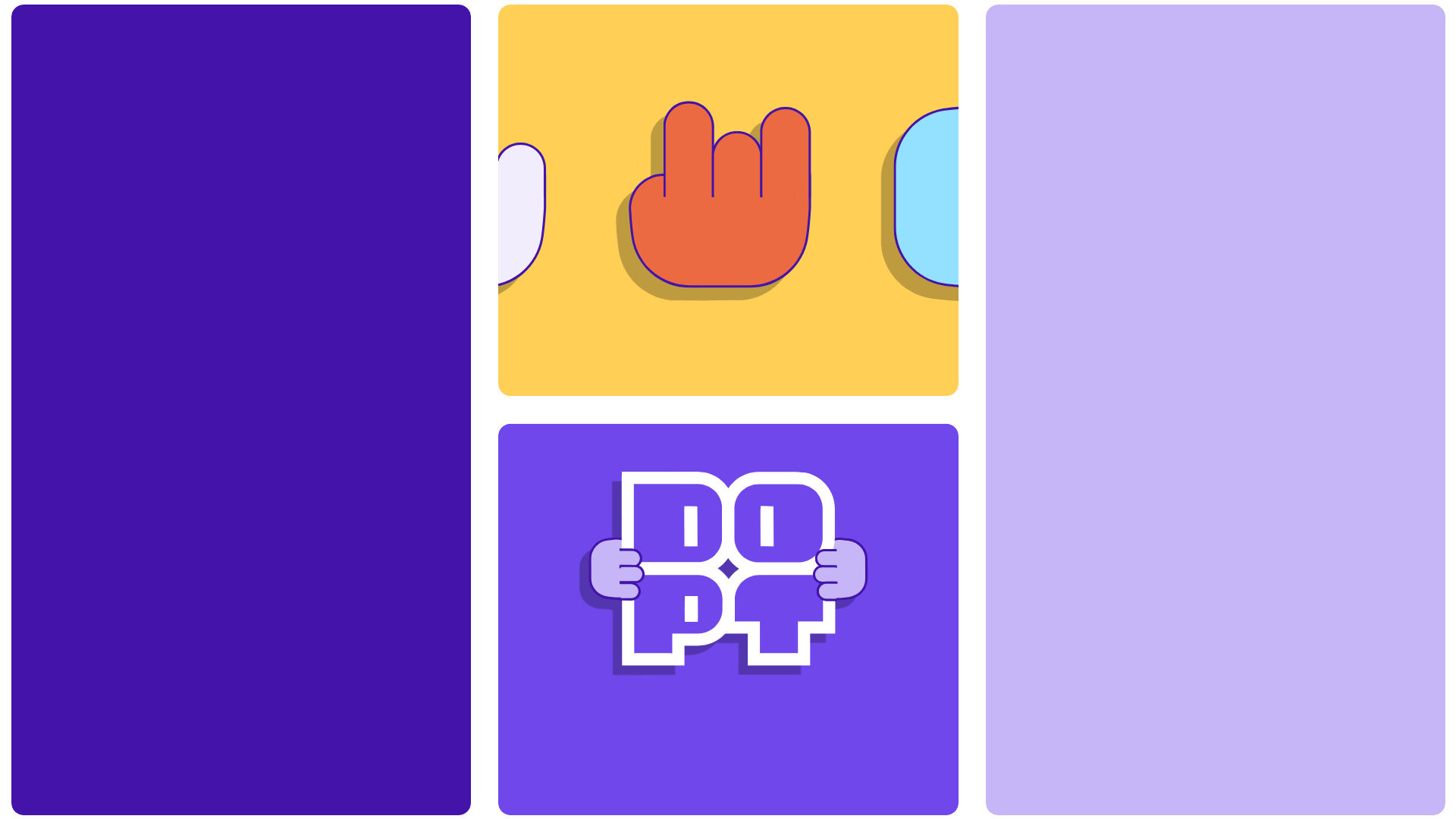 We developed a block system—modular visual components in four arrangements and two styles—that mirrors the composable nature of Dopt’s APIs and SDKs. Paired with a library of hand gestures and emoji-style icons, the system gives the brand a toolkit of its own: flexible, expressive, and infinitely reconfigurable.